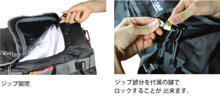 - ● ロック可能なジッパー