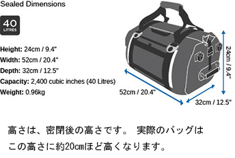 40Lの容量を持ち、前面にメッシュポケットやDリング・反射板、重い荷物にも肩がいたくならないパッドが付いた肩がけや背負いがけが出来る2WAYタイプのショルダーストラップ、内部には大型の内側のウエット/ドライ ポケット付の多機能モデルです。熱圧着製法・独自のFold Seal System™により万が一の落水、冠水にも対応し防水性を保てます。 また、PVC防水シート製法され、耐久性があり、水洗いも簡単でクリーンに保つことが出来ます。100%完全防水ダッフルバッグは、旅行、ボーティング、あるいはキャンピングに最適のバッグです。